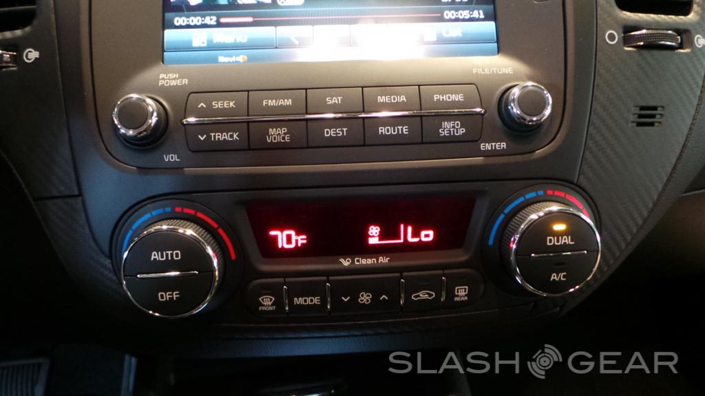 Some of the additional options include 17-inch sport rims over the 16's, HID headlights, power sunroof, ventilated seats, dual climate control, heated rear seats (bottom) and even a heated steering wheel. KIA's added illuminating door handles with proximity sensors too. That was neat. Another option is their 4.2-inch TFT display inside the meter cluster as mentioned above. That was a nice change. Having navigation in the meter cluster allowed the larger 7-inch display to keep playing tunes and showing album artwork for the rest of the passengers.