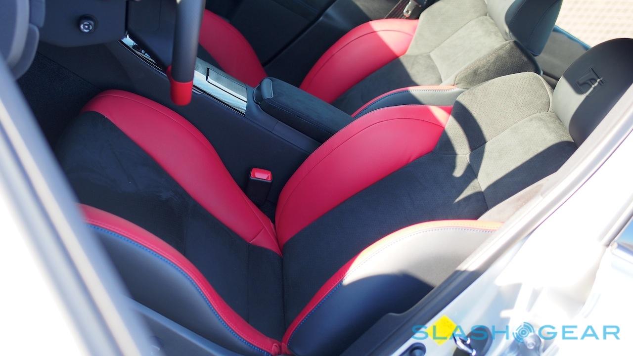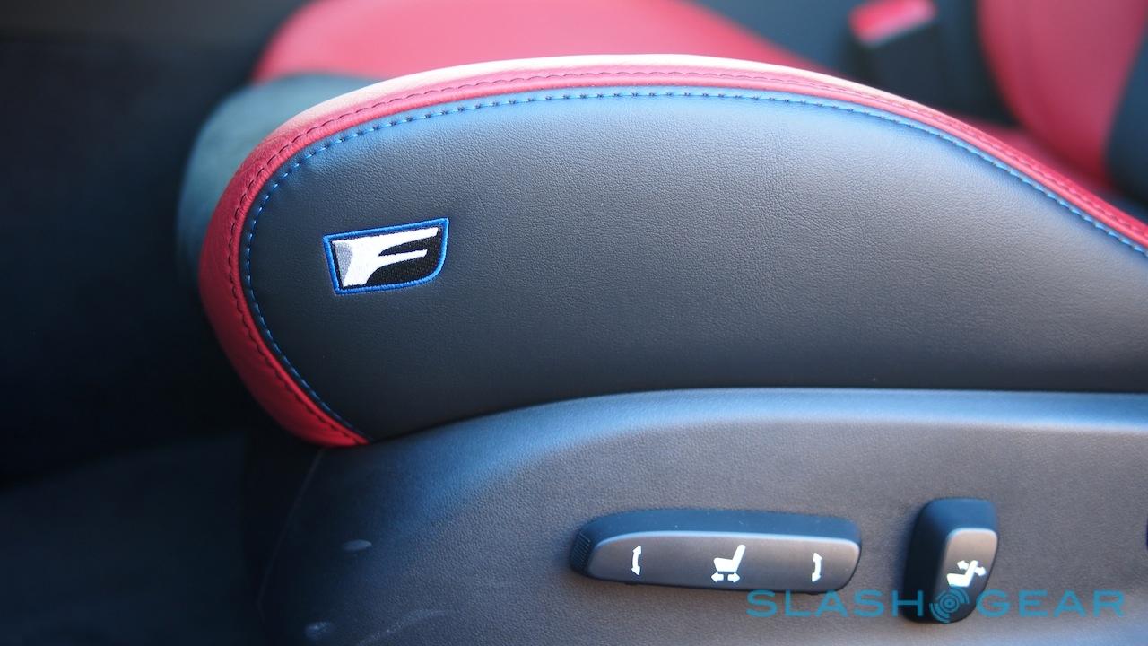 Inside, the IS F gets a unique steering wheel with a chunky perforated grip and tactile brushed aluminum paddle-shifters, along with a splash of color from red leather highlight trim that matches the two-tone upholstery which is also new for the 2014 car. Our tester paired red and black in a way that could hardly be described as subtle, but the seats are supportive, easily adjusted thanks to the multi-directional electrics, and are both heated up-front.