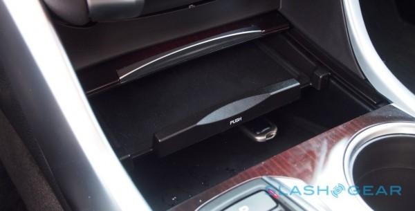 I particularly like some of the more thoughtful touches. The storage nook at the bottom of the center stack, for instance, hides a USB port and 12V outlet, but also has a second, sliding tray inside so that you can cover up cables and have your phone or iPod more readily to hand.