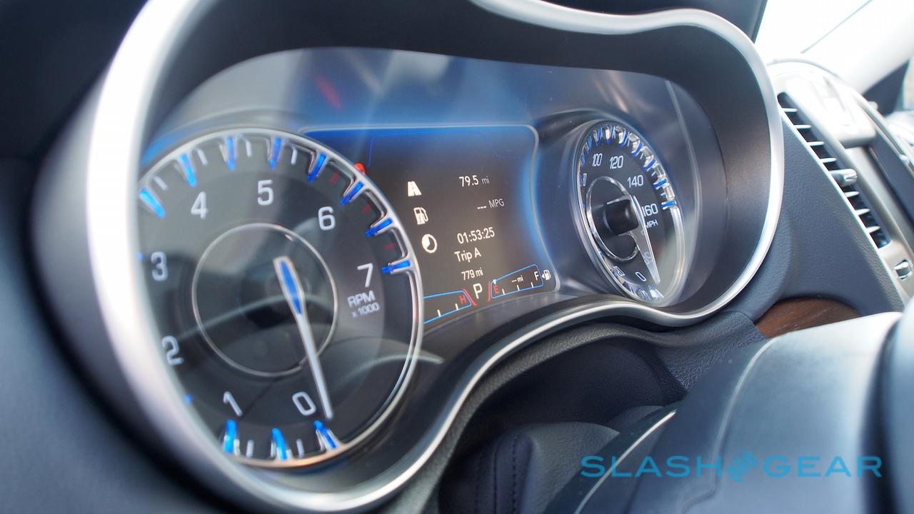 It's not a clean sweep, though. Chrysler switched to a rotary electronic gear selector, which works well, but then failed to really capitalize on the space that freed up: you get no more center console storage than you would if there was a traditional shifter poking out. The wheel is overly large, and the 8.4-inch square touch panel atop the center stack tries to fit too much onscreen at any one time, at least by default.