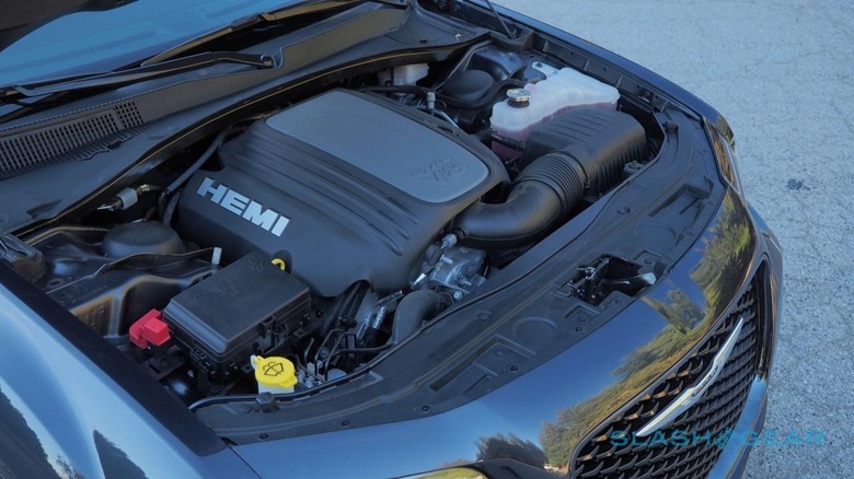 A muscle sedan needs a monster under the hood, and Chrysler has opted for a 5.7-liter V8 HEMI. That manages a healthy 363 horsepower and 392 lb-ft of torque, and is hooked up to a surprisingly smooth 8-speed automatic. There are paddle shifters if you're so inclined – unusually, and usefully, they need to be manually put back into auto mode, and won't revert unexpectedly and of their own accord – but the transmission does a solid job of keeping the engine in its torque band; stabbing the Sport button holds the lower gears, though has no effect on the suspension settings.