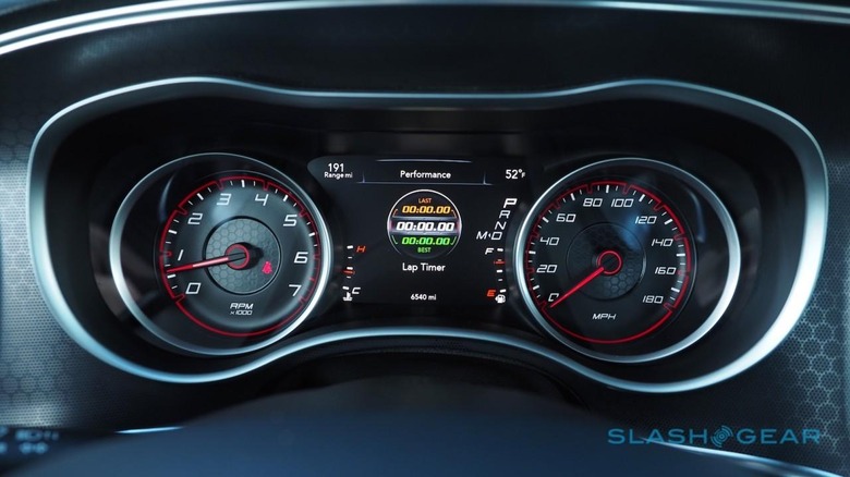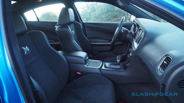 Something has to give, mind, and that's generally in interior comfort. Dodge's dashboard is solid but plasticky, the buttons and controls straightforward if hardly inspiring. My review car had the $1,595 Nappa leather and Alcantara seat upgrade, which also throws in heating and ventilation, heating in the rear, a heated wheel, seat memory, and a few other niceties. Without that, you get black cloth seats.