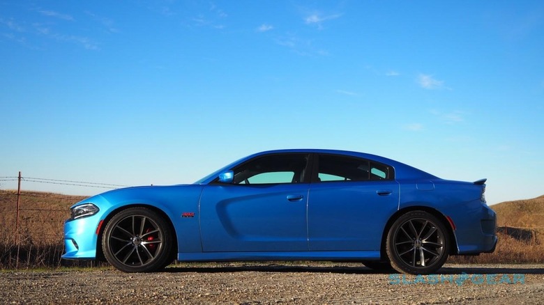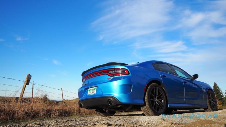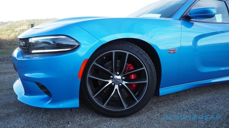 In terms of Dodge's line-up, it slots in-between the regular Charger R/T and the Charger SRT 392. Compared to the latter, you keep the 8-speed TorqueFlite auto transmission but lose the three-mode suspension, while the Brembo brakes are slightly smaller and use four pistons rather than six, while the wheels slightly narrower.
