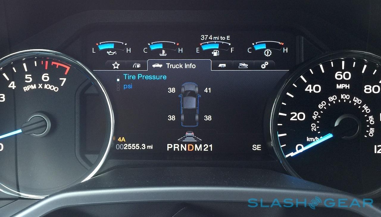 Nonetheless, there are several features we found ourself wishing all cars would come with, like two full 110V outlets – one in the dash, one at the rear – which get a 400W inverter (300W while driving) so that they can not only charge phones and tablets, but run a flatscreen TV or charge your power tools. The optional 8-inch display sandwiched between the analog dials in the driver binnacle is clear and crisp, topping several panes of vehicle information with a row of customizable virtual gages.