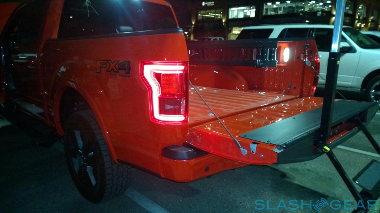What you wouldn't find on a luxury sedan is a capacious rear bed, and new on the F-150 is a power tailgate which can lower down automatically for easier loading. Hit a button on the keyfob and the rear drops down; Ford's tailgate step system has been carried over but redesigned, with the handle now fared in, and the actual opening process made more straightforward.