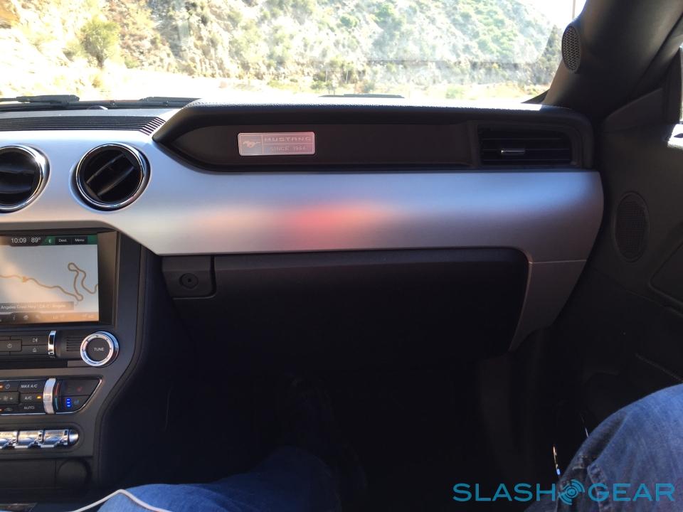Ford SYNC is an option, as is blind spot and cross-traffic warnings, adaptive cruise control, and voice controlled navigation. EcoBoost Premium and GT Premium models can be fitted with a Shaker Pro Audi System, with HD radio, a CD player, and twelve speakers sharing 390W of amplification (one of which is an eight-inch subwoofer). It's loud and meaty, though I had more fun listening to the Mustang's own soundtrack.