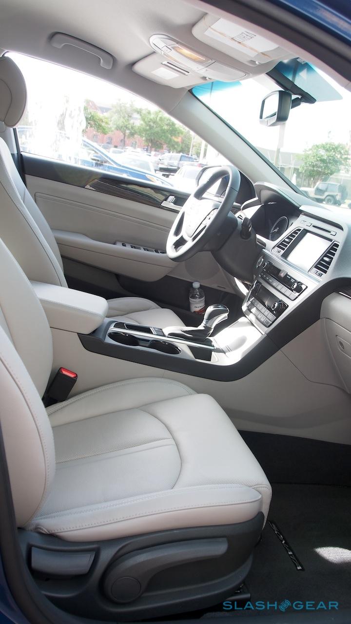 As for the tech, all get cruise control, ABS, traction control, hill-start assist, tire pressure monitoring, and an extra focus on besting the NHTSA's Small Overlap Test (those results aren't in yet, though). The blind spot detection (standard on the Limited and Sport 2.0T; optional on the Sport and Eco) can be optionally upgraded on the Limited/Sport 2.0T to Lane Departure Warning, which monitors even further back in the lanes either side of the Sonata and flags up if there's a fast-approaching vehicle there which might scupper your own maneuvering.