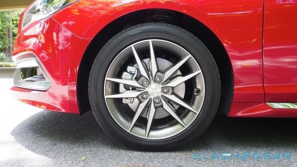 As for the tech, all get cruise control, ABS, traction control, hill-start assist, tire pressure monitoring, and an extra focus on besting the NHTSA's Small Overlap Test (those results aren't in yet, though). The blind spot detection (standard on the Limited and Sport 2.0T; optional on the Sport and Eco) can be optionally upgraded on the Limited/Sport 2.0T to Lane Departure Warning, which monitors even further back in the lanes either side of the Sonata and flags up if there's a fast-approaching vehicle there which might scupper your own maneuvering.