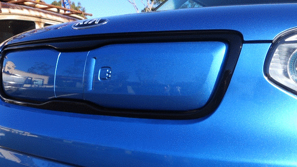 Charging is courtesy of either a regular 240V connection or a 480V CHAdeMO DC fast-charge port, both hidden behind the pop-open grille. Figure on a charging time of 4-5 hours if you're supplying 240V or 33 minutes to go to 80-percent on 480V.