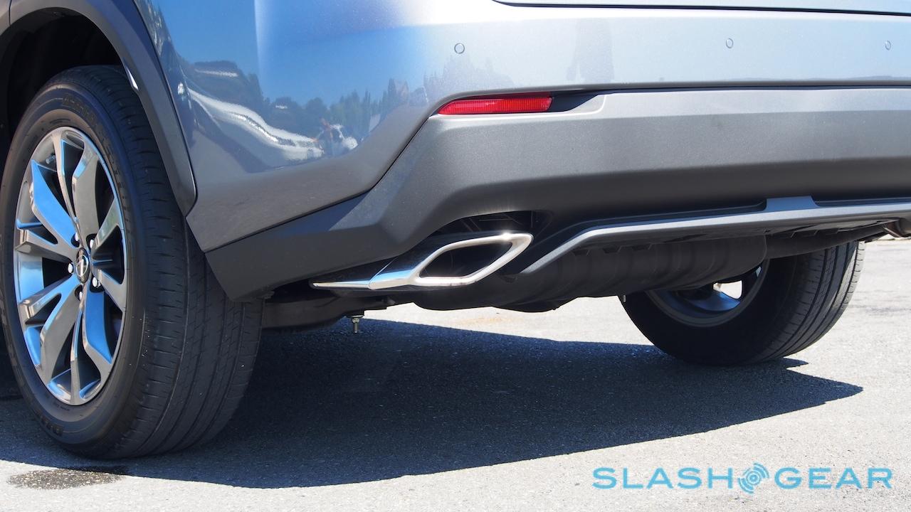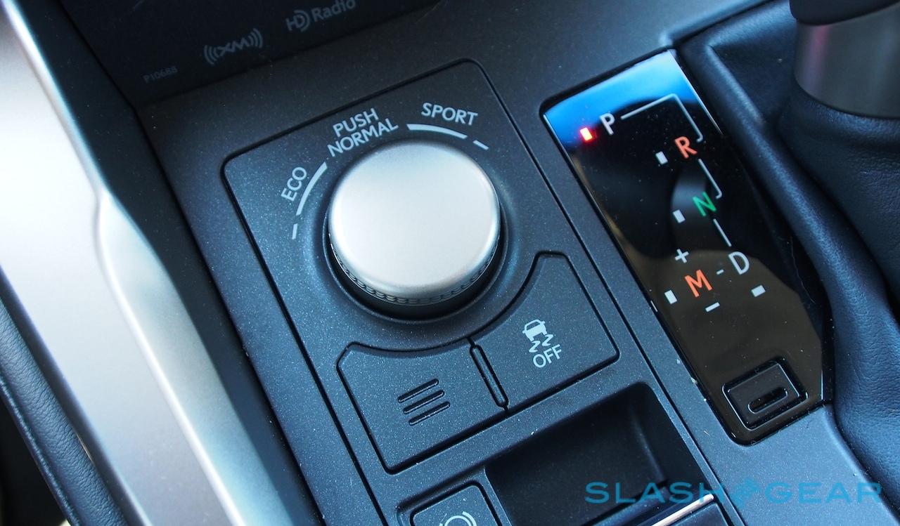 With 235 HP and 258 lb-ft of torque, the NX 200t isn't exactly a Nürburgring candidate. Lexus quotes a 0-60 mph timing of 7.2 seconds in the FWD model, though the AWD's power split system shaves 0.2 seconds off that. Fuel economy hasn't been officially EPA tested yet, but Lexus expects 21/28/24 mph for city/highway/combined for the AWD (the FWD will do a single point better in the city, Lexus predicts). With mixed driving, I saw 26 mpg accordion got the onboard computer.