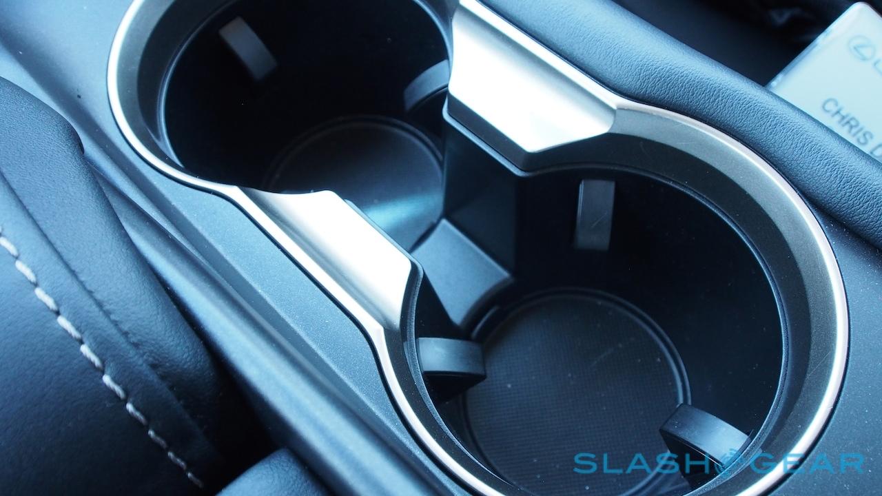 Obviously you'll need a phone with the right hardware itself in order to take advantage – if you're an iPhone user, that means adding a Qi-compatible case – but otherwise it's a case of dropping your Nexus 5, Galaxy S5, or Lumia Icon into the recess. Unfortunately, that recess is too small for a phablet like Samsung's Galaxy Note 3, despite there being enough space that Lexus could feasibly have enlarged it to suit. An arguably better solution would've been a flat bay and the same ultra-grippy finish as the bottle holders to keep phones from sliding around.