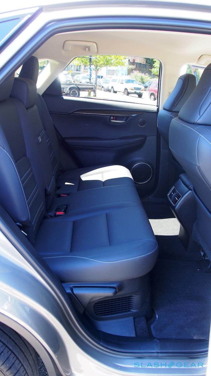That's helped by the broad load area with minimal arch intrusion, though even with the 60/40 split rear seats folded (power-folding optional, as is a power rear hatch) the NX falls short in pure cubic feet against the competition. There's 17.7 cubic feet with the seats up, and 54.6 with them down; Lexus is also particularly proud of its folding cargo cover, which tucks under the trunk floor when not needed, but a retractable fabric cover would arguably do much the same thing.