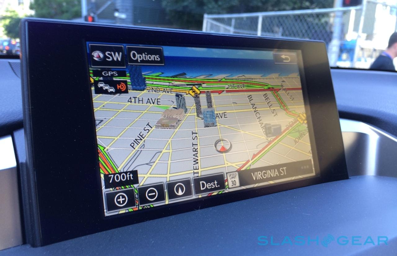 Complicating things is the sometimes-overloaded UI of Lexus' system. The main menus are clear enough, albeit with options spread across too many pages, but switch to turn-by-turn directions and things go downhill. There's simply too much on-screen at any one time: I really don't need persistent icons to tell me there's a GPS signal, or that HD Traffic is switched on, and the icon to go back to the main menu is right above the next-turn icon, meaning sometimes you can have two arrows pointing in different directions, stacked right on top of each other.