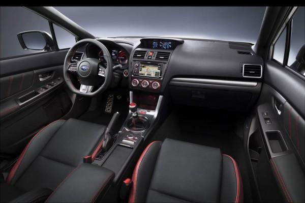 Inside the car gets Alcatara seating surfaces with red and black leather bolsters. The STI also gets a flat bottom steering wheel and seats designed to reduce whiplash injuries. The STI also gets a big rear spoiler, special hood, fenders, doors, and quarter panels. The hood scoop on the STI funnels cool air to the intercooler. Pricing and availability are unannounced at this time.
