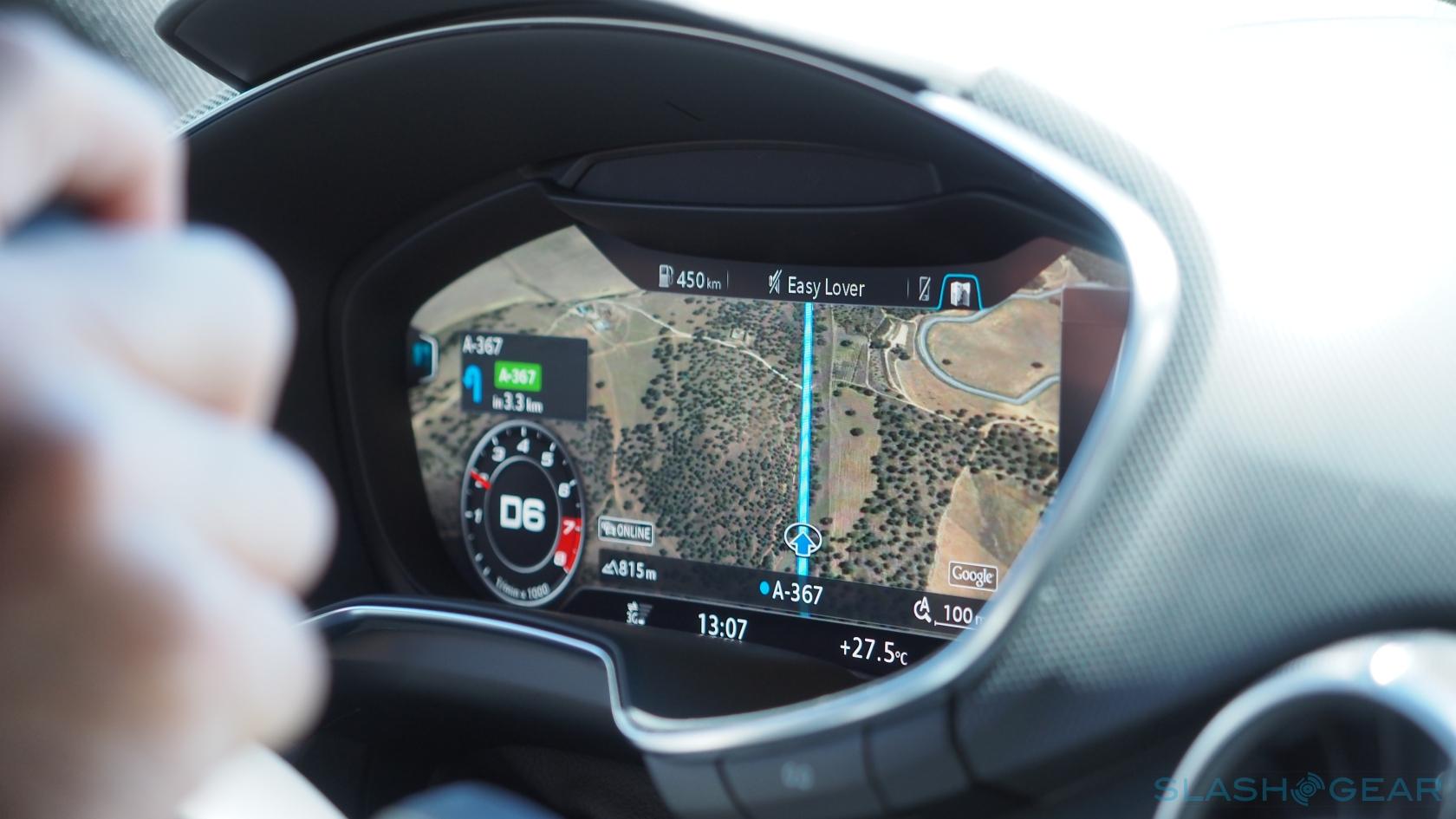 The display can be switched between a speedometer and tach, though it's worth noting that you don't get a second screen in the middle. Effectively the passenger is along for the ride, though they at least have access to the ingenious turbine-inspired HVA controls built into the air vents.
