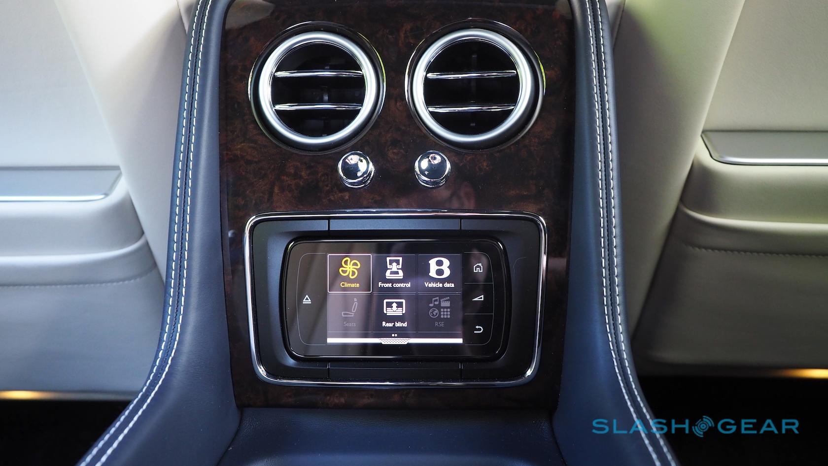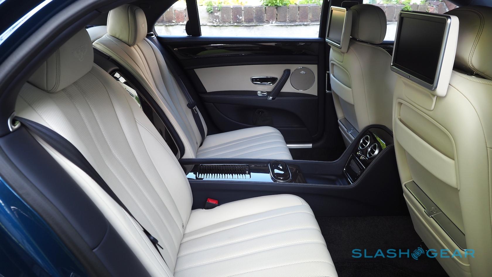 Bentley clearly expects most of the fun to be happening in the back. The £3,025 ($3.9k) full-length center console turns the Flying Spur into a four-seater, replacing the rear bench with two individual seats that are controlled with a pop-out touchscreen remote. A £1,665 ($2.2k) refrigerator between them is perfect for a bottle of Bollinger (or, in my case, some sandwiches my Mom made for me); there's also the rear-seat entertainment package with its twin TVs and DVD players for £5,695 ($7.4k) and an optional WiFi hotspot.