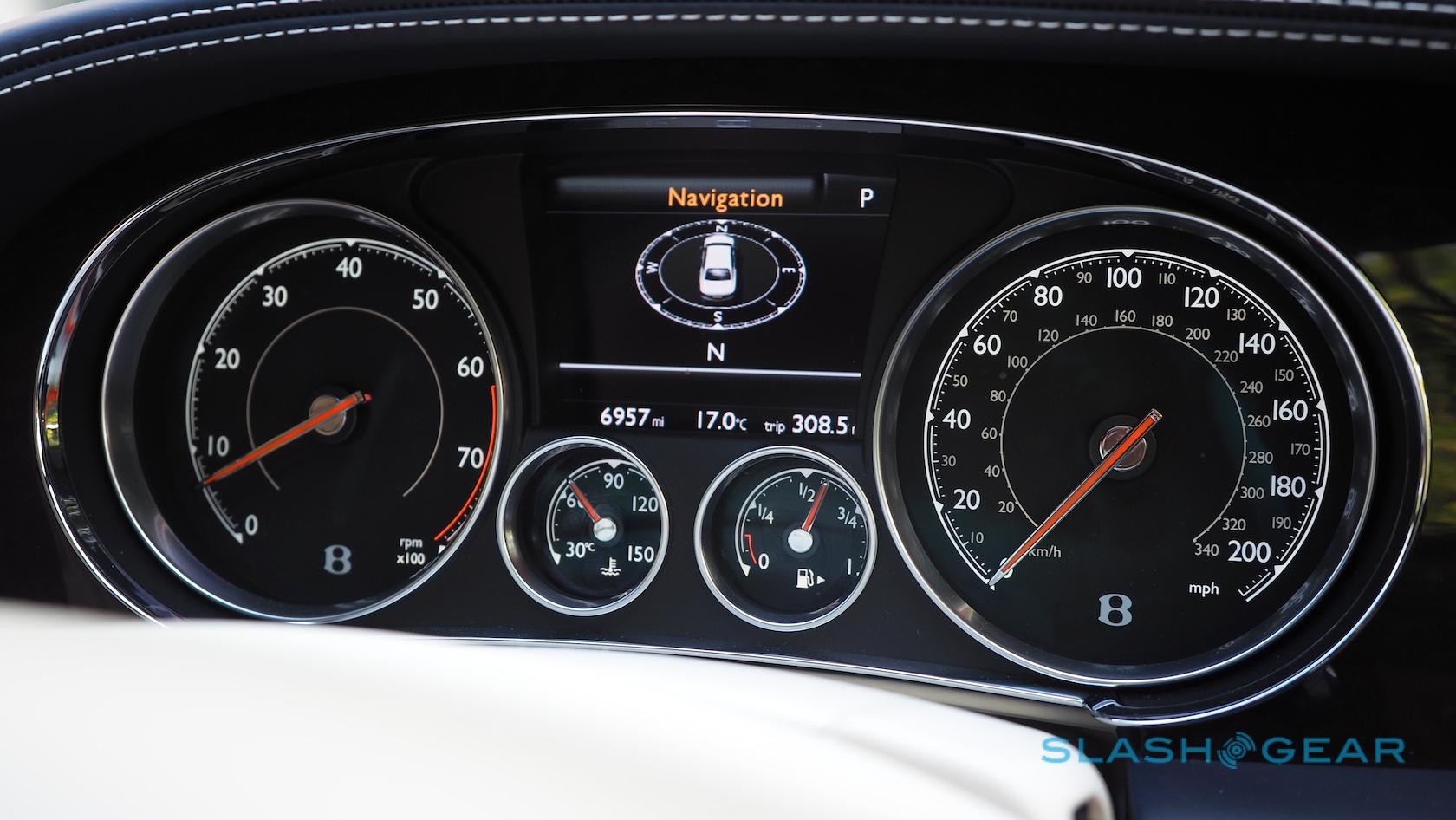 Just as when I open my mouth and show my bad British teeth, however, the Bentley has some archaic charms of its own. Most of the cabin is finished to such a high standard that the few odd points stand out all the more glaringly. The plasticky steering wheel buttons, for instance, or the complete absence of USB ports. Guess how great Spotify streamed via lossy Bluetooth sounds on the £5,835 ($7.6k) Naim audio system.