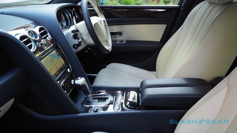 Bentley clearly expects most of the fun to be happening in the back. The £3,025 ($3.9k) full-length center console turns the Flying Spur into a four-seater, replacing the rear bench with two individual seats that are controlled with a pop-out touchscreen remote. A £1,665 ($2.2k) refrigerator between them is perfect for a bottle of Bollinger (or, in my case, some sandwiches my Mom made for me); there's also the rear-seat entertainment package with its twin TVs and DVD players for £5,695 ($7.4k) and an optional WiFi hotspot.