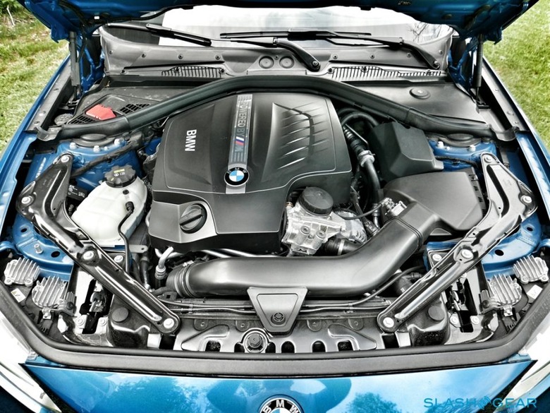 Despite the matching displacements, the six-cylinder motors ticking under the hood of each respective M model differ in pedigree. Snatching several key internal components from the larger BMW M3 sedan and M4 coupe (including the pistons) and remapping its management system nets the M2's N55 unit 365 horsepower and 369 lb-ft of overboosted torque, an appreciable, although not overwhelming increase in output as compared to the M235i's 320 horses and 330 lb-ft of twist. The desire for balance over outright tire-shredding seems to have been at the heart of the decision to avoid a wholesale lift the S55 from the M3/M4 – not to mention the need to protect the pricier coupe's position in the portfolio – but even still the M2 is significantly quicker than the M235i with the hammer down in any situation.