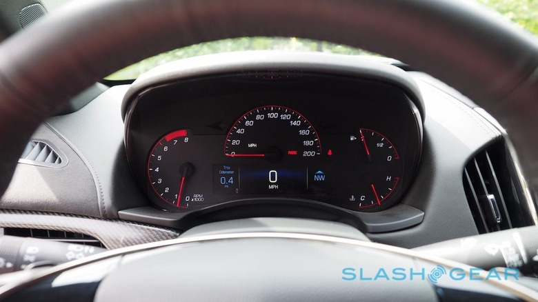 It's not the only gadgetry in the cabin, which comes with the same attention to detail that Cadillac – raising its game significantly from the ELR onwards – is now capable of. Leather, sueded microfiber, Alcantara, wood, and real carbon-fiber grace the dashboard, doors, and seats, hand-stitched and beautiful to the touch; only the glossy black plastic of the center console, apparently keen to preserve every greasy fingerprint it can get, spoils the show, though I'd not argue with a more expansive LCD in the driver binnacle rather than the comparatively small panel fitted.