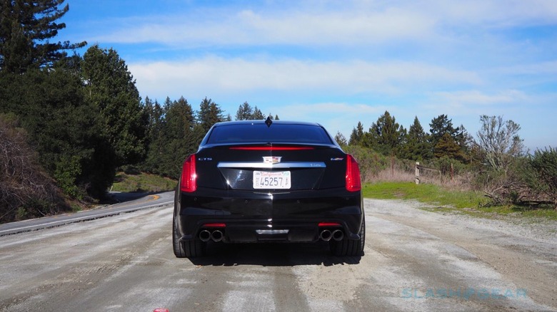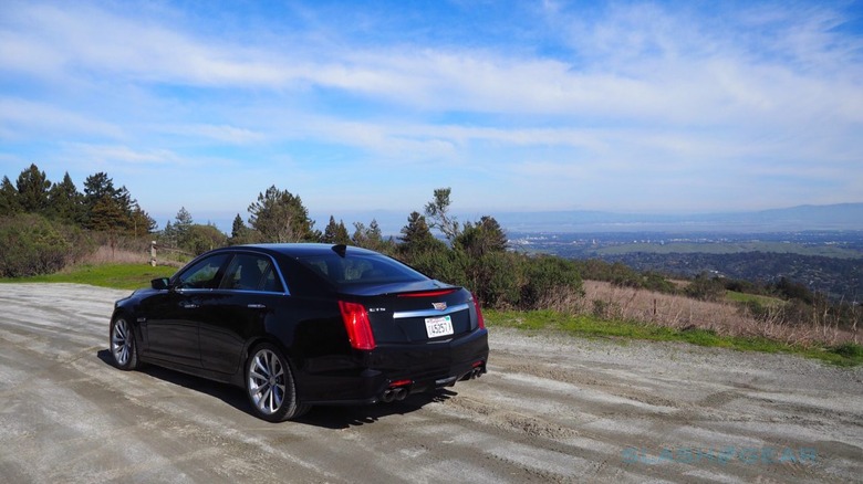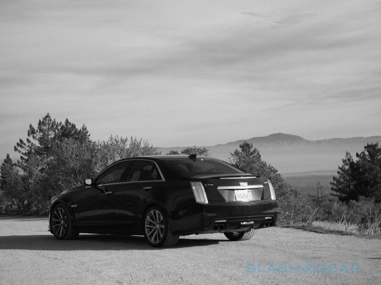 I resisted the urge to treat the Californian back roads as unofficial racetracks, and instead stuck to the more everyday settings. That's not to say the CTS-V is any less of an animal, mind; swinging out of my first corner onto an uphill stretch, with the car in Sport mode, I stomped with my right foot and the car's rear-end went twitchy and squirreled entertainingly across the lane. Not out of control, but definitely good fun.