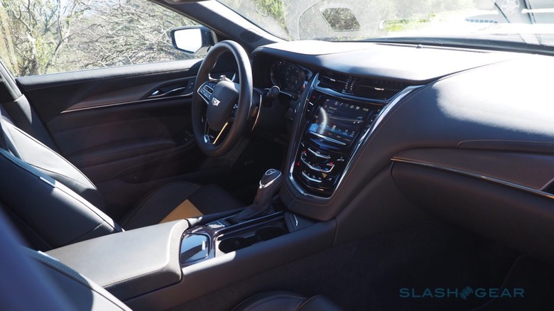 If there's a place the Germans still have an edge, it's the dashboard. Cadillac isn't short on tech – you get Apple CarPlay, Google's Android Auto, automatic parking assistance, a wireless phone charger hiding in the center console behind the motorized 8-inch touchscreen, OnStar 4G with WiFi hotspot support, and cameras down by the curbs to make sure you don't dint that stunning body kit, among other things – but while the hand-cut and stitched leather feels great, the gloss-finish black plastic is less appealing.