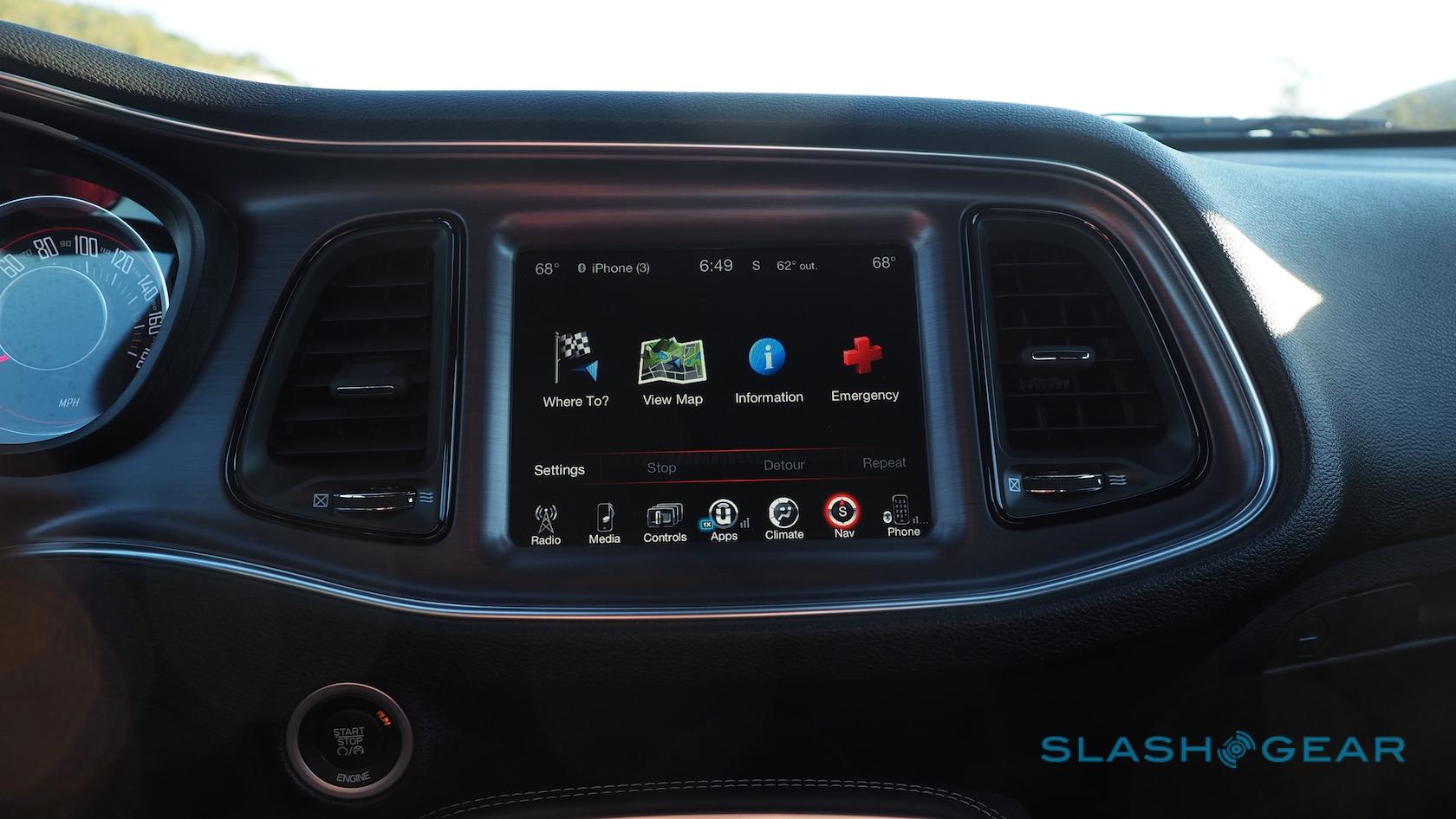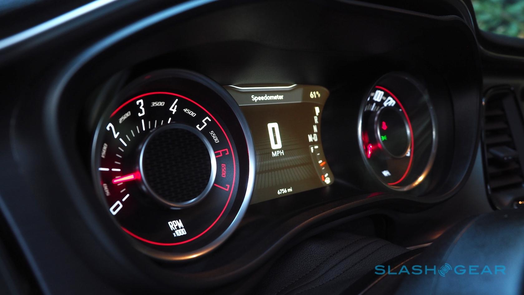 Inside, the seats may be cloth-covered but they're well padded and bolstered. Dodge's instrumentation has a charmingly 60s-rocket-ship feel to it, though the analog dials flank a sizable display and there's a big touchscreen in the center console: 7-inches as standard, but upgraded to 8.4-inches with navigation and HD radio/SiriusXM as part of the $795 Uconnect 8.4 package. It's easy to use, and Dodge hasn't succumbed to the temptation to do away with all physical buttons and controls, so you can still change the volume or adjust the HVAC without digging through menus.