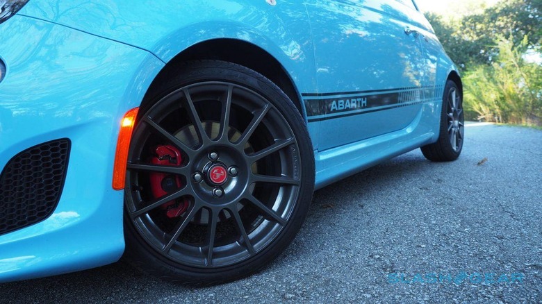 There, the whippet-handling and eager steering encourage the sort of nippiness that tiny Italian cars are infamous for. Since you can pretty much count on it always being a ratio below what you'd probably choose for comfort and economy's sake, sudden squirts into closing gaps in traffic are addictively easy. At the other side, while the single-piston front and rear brakes may look small, they're more than enough to haul the Abarth to a halt in short order.