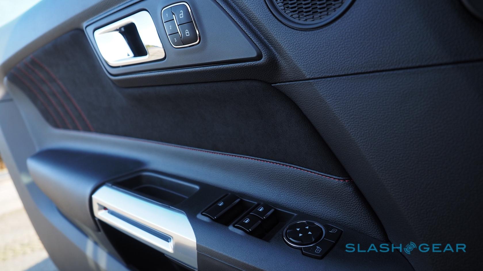 For $1,995, the California Special gives the Mustang's interior a polish, with grippy suede inserts in the leather seats and contrast stitching on seats, doors, and other trim areas. Otherwise, though, it's the same dimly-lit retro cave as before, better looking to the eye than the switchgear feels to the fingertips.