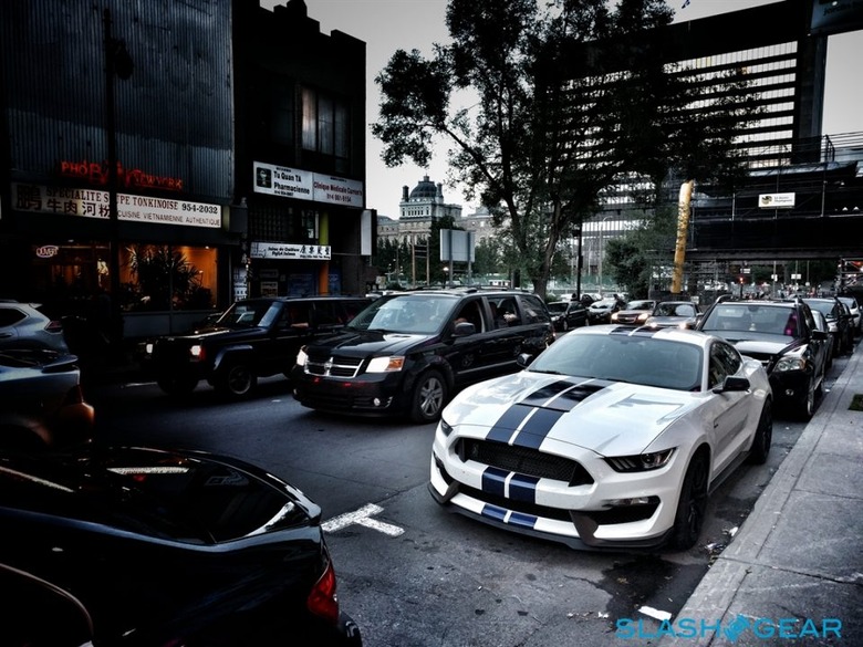 All of that sauce, so delicious on the track, overpowers much of the Mustang's flavor in day-to-day driving. Around town, even with the shocks set to their most supple, the Shelby GT350 remains overly eager to tell you about each and every striation in the pavement below, while on the highway the vehicle's propensity to tramline will keep your arms active as you attempt to plot a relatively straight course.