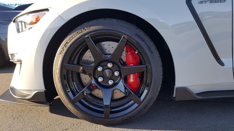 Ford's diet for the Shelby Mustang starts at the bottom and works upward. Shaving off 15 pounds per carbon fiber wheel – versus 33 pounds for the equivalent in aluminum – is a massive deal. It's hard not to notice the handling and acceleration, and Ford gets a ton of street cred for being the first to offer carbon fiber wheels on a mass production vehicle.