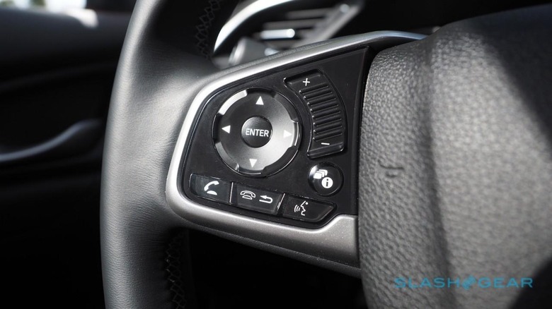 That's not to say Honda scored 10/10. You get plenty of easily-reached shortcut controls on the steering wheel, including a slick little touch-sensitive volume rocker that can be either pressed or swiped, but the Civic lacks a physical volume knob on the center stack. Instead you get capacitive buttons which, though futuristic in a 90s HiFi sort of way, are annoying when you simply want to reach out and twiddle the music up or down.