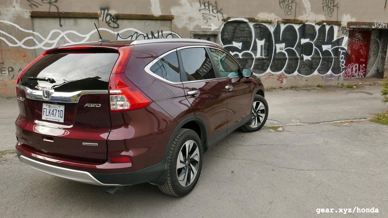 In fact, given the easy-to-park size of the Honda, it's equally impressive just how generous the cabin feels when loaded up with a full complement of five passengers. Yes, the bench is mounted a tad bit low in the second row, but it's still a remarkably comfortable place to inhabit on an extended road trip (with the front thrones also being suitably supportive). The interior of the CR-V is also quiet even over rough roads, of which there are plenty to explore when navigating Montreal's crumbling infrastructure.