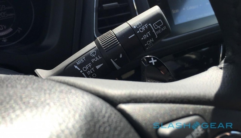 Honda has lifted the center console, integrating a sliding arm-rest for the driver's elbow, and leaving space for a "Console Pocket" cubby under the gearstick. It's not just a place to drop your phone, either, with up to two USB ports, an HDMI input, and a 12V power outlet. That's an unusual degree of connectivity for a car in this segment, but the positioning leaves something to be desired: actually figuring out where to plug in your phone charger behind each of the covered outlets is trickier than it needs to be.