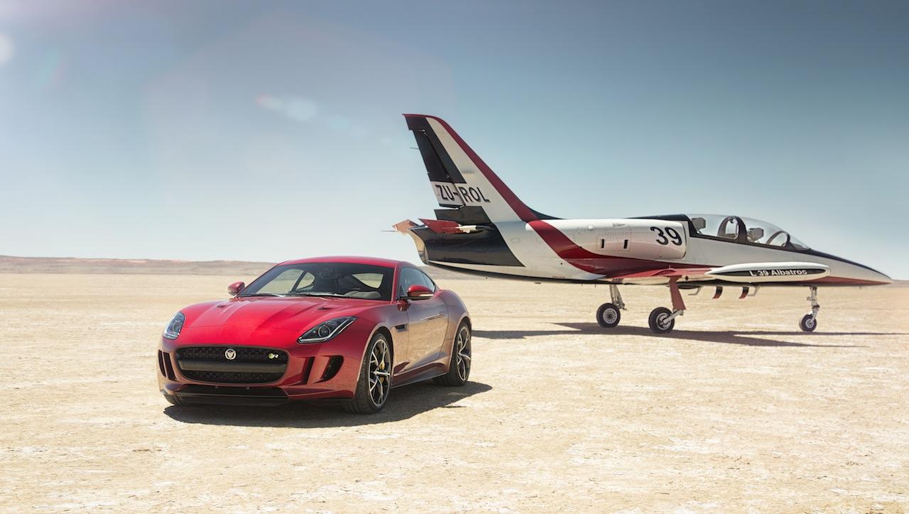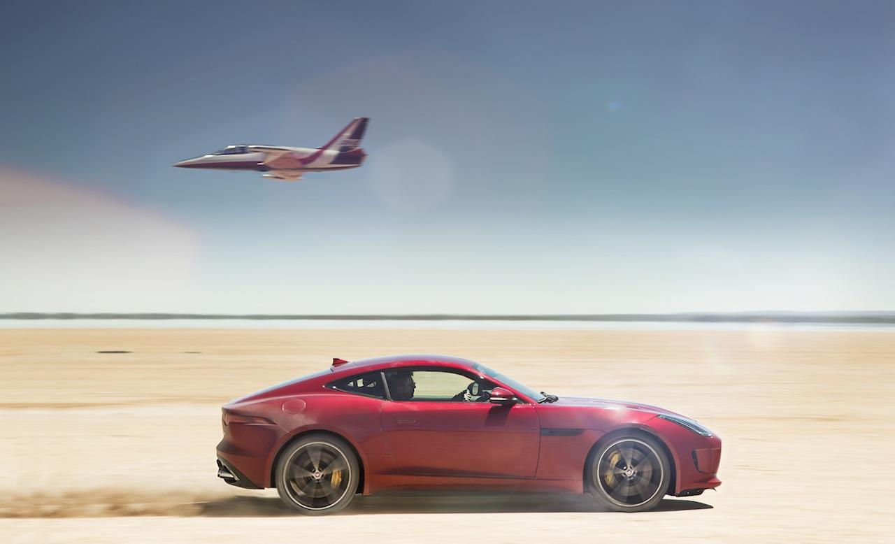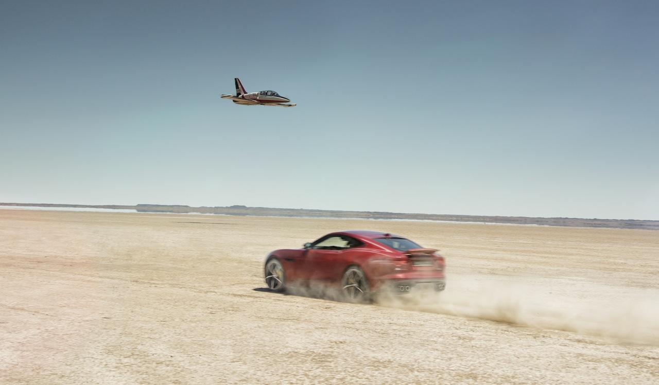 Jaguar is adding all-wheel drive to its 2016 F-TYPE R Coupé, part of a range-boosting move that will see variations on the popular model double to twelve. Set to debut officially – along with the rest of the new lineup – at the LA Auto Show later this month, the new F-TYPE R will be good for 0-60 mph in just 3.9 seconds, Jaguar says, and then romp on to a top speed electronically-limited to 186 mph. The big news, though, is the extra traction, which Jaguar tested by taking the new coupé to the Hakskeen Pan in South Africa and pointing it at a jet.