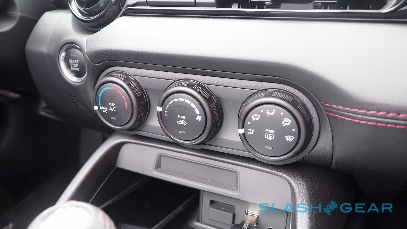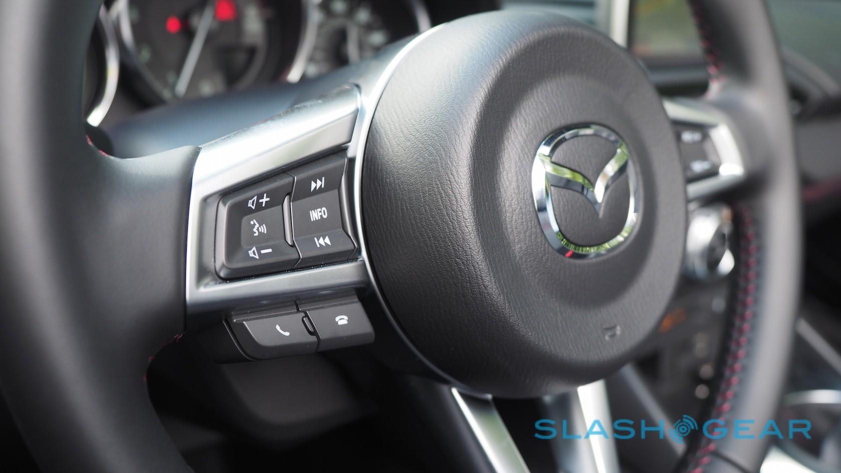 If there are compromises in the cabin, they're the result of Mazda doing its best to hit both price and weight targets. The standard kit list on the Sport is solid: air conditioning, power locks and windows with remote keyless entry, a leather-wrapped wheel and shifter, Bluetooth, and a 6-speaker audio system with speakers in the driver's headrest.