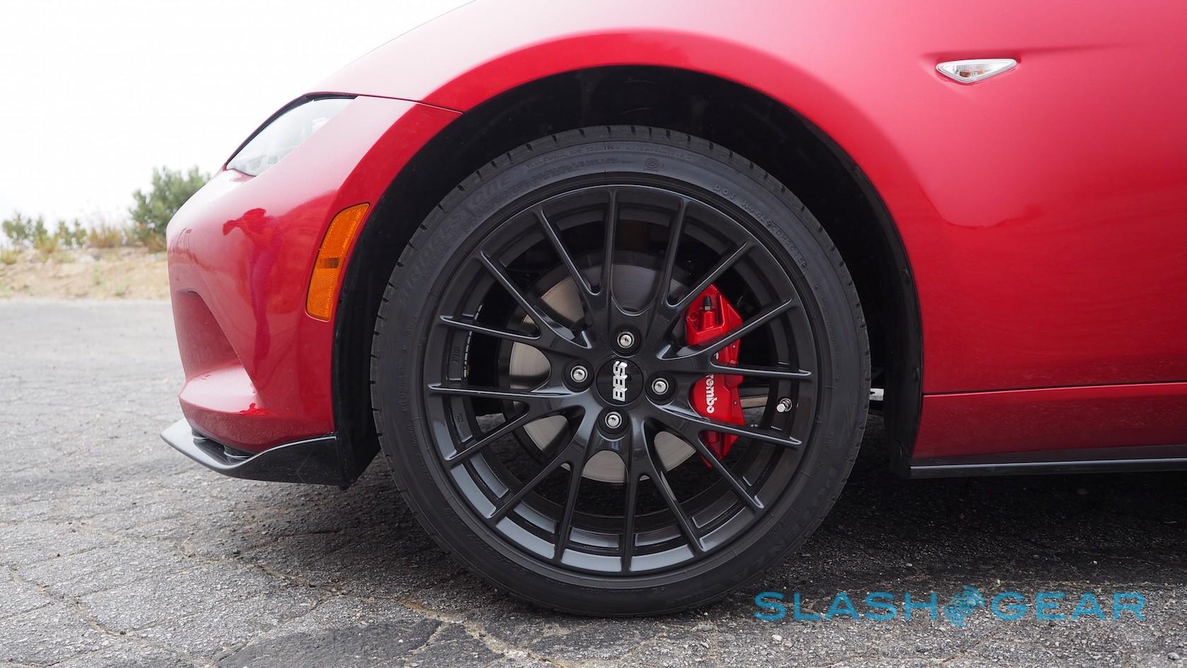 Those with more interest in throwing their Miata into the corners, however, should look to the Club, which Mazda expects to appeal to younger drivers keen on its tauter suspension. It'll also be the only MX-5 in the range to be offered with the $3,400 Club Brembo/BBS Package, which adds Brembo front brakes, 17-inch BBS dark alloy wheels, side sill extensions, and a rear bumper skirt.