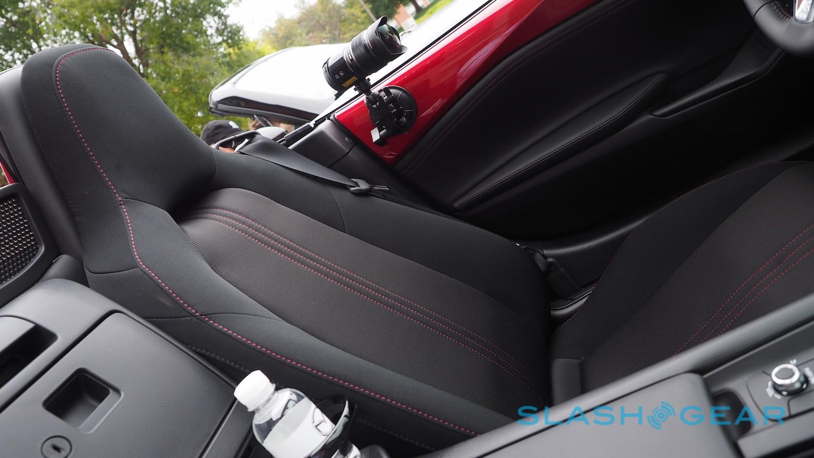 There are also new seats, a decade in the making. Mazda has junked the traditional foam and springs, opting for a high-tension cloth mesh. Not only is it thinner and lighter than the traditional materials, it also promises to mold around your body more readily, hugging you in place when you're cornering rather than your shoulders slipping from bolster to bolster.