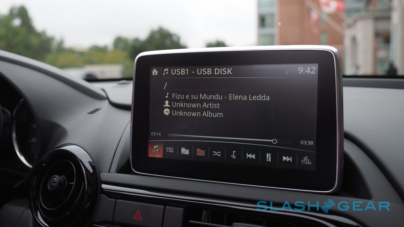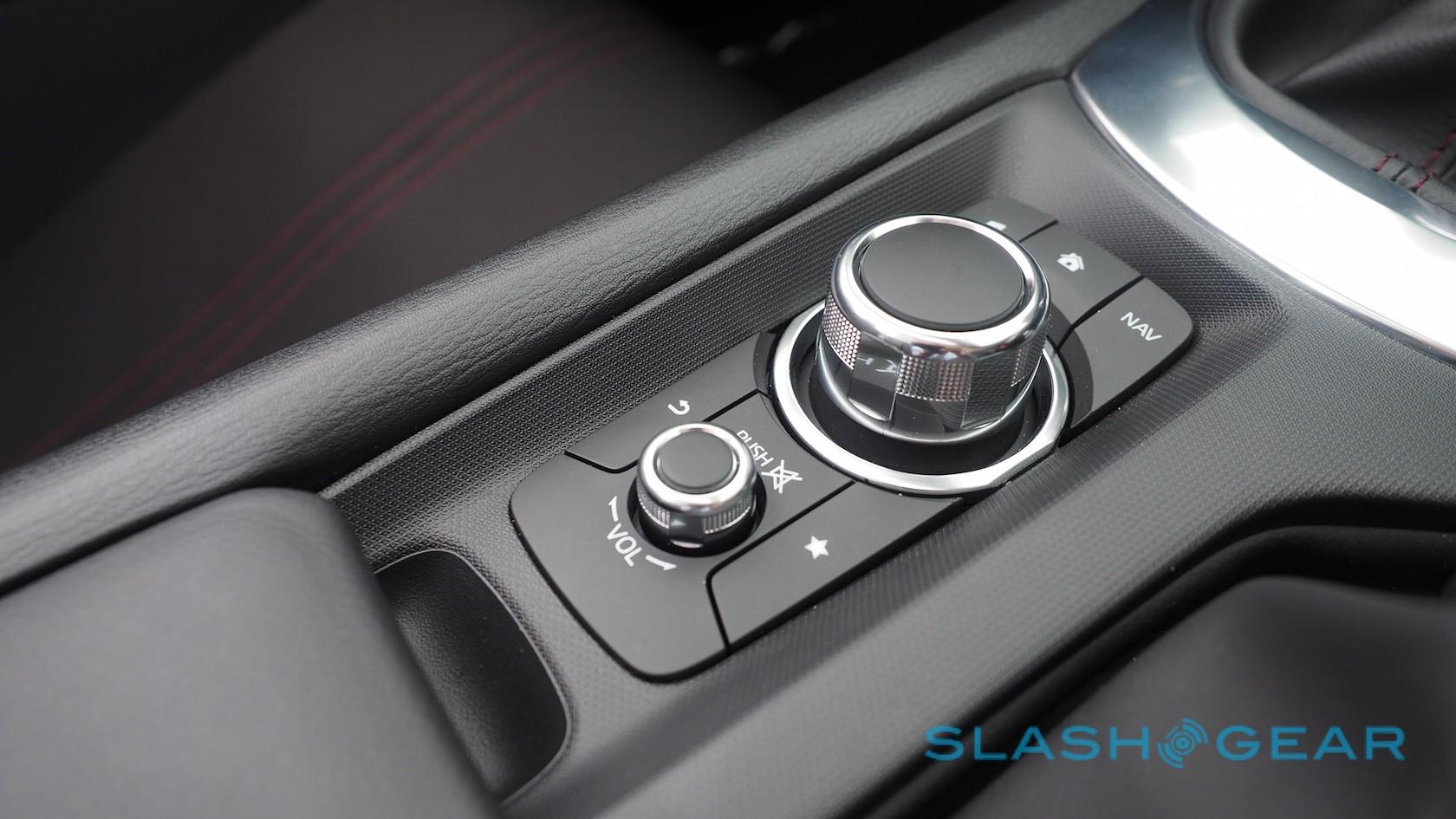 Mazda's infotainment system is decent but a little over-protective. The touchscreen only works when you're stationary; pull away from the lights and you'll have to use the jog-wheel/joystick down in the center console to navigate.