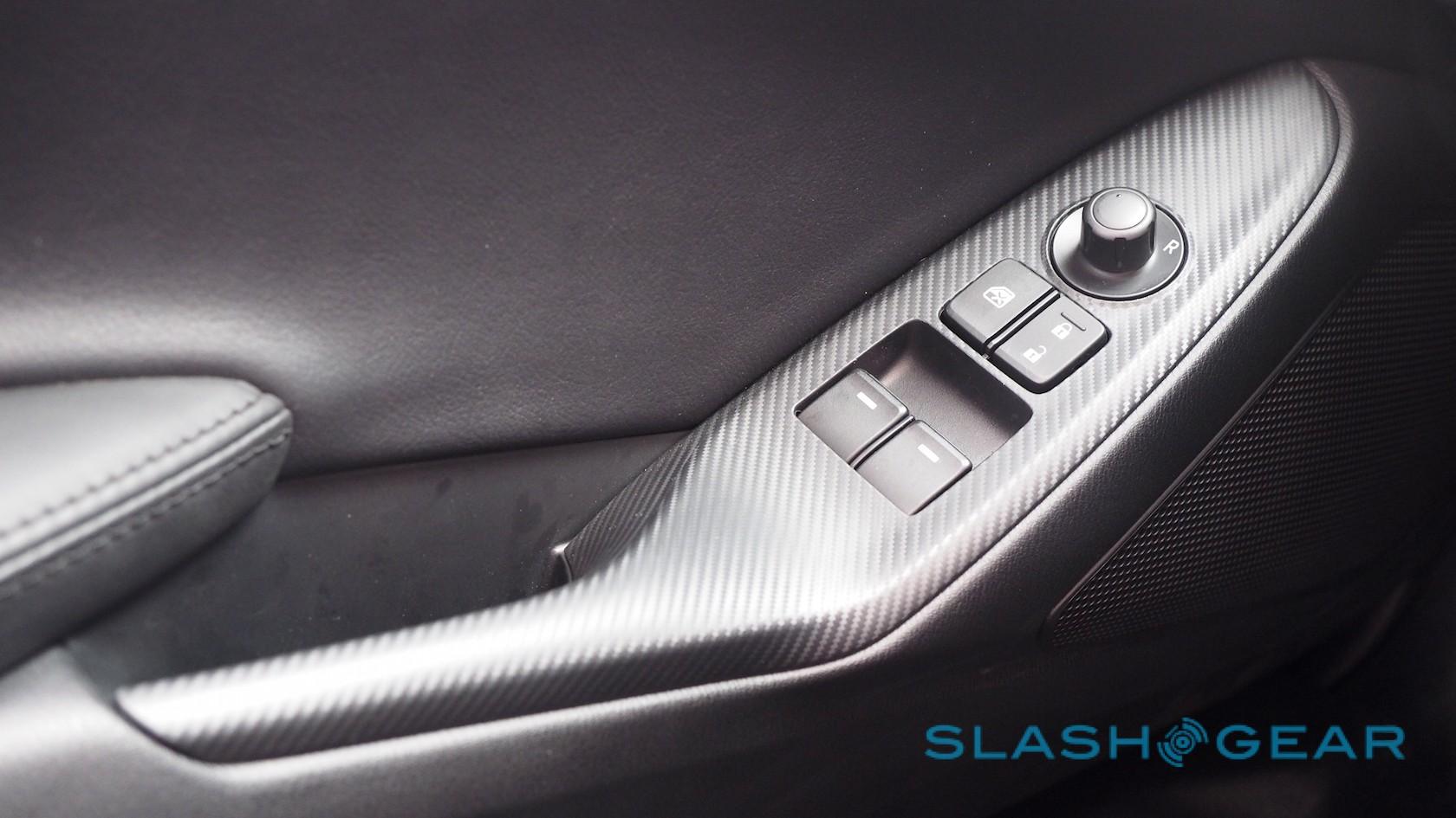 Meanwhile some of the materials err on the plasticky side. The sun visors are sharp-edged and feel cheap, while the tops of the doors may be body-colored but they're plastic not metal, and flex a little when you squeeze them.