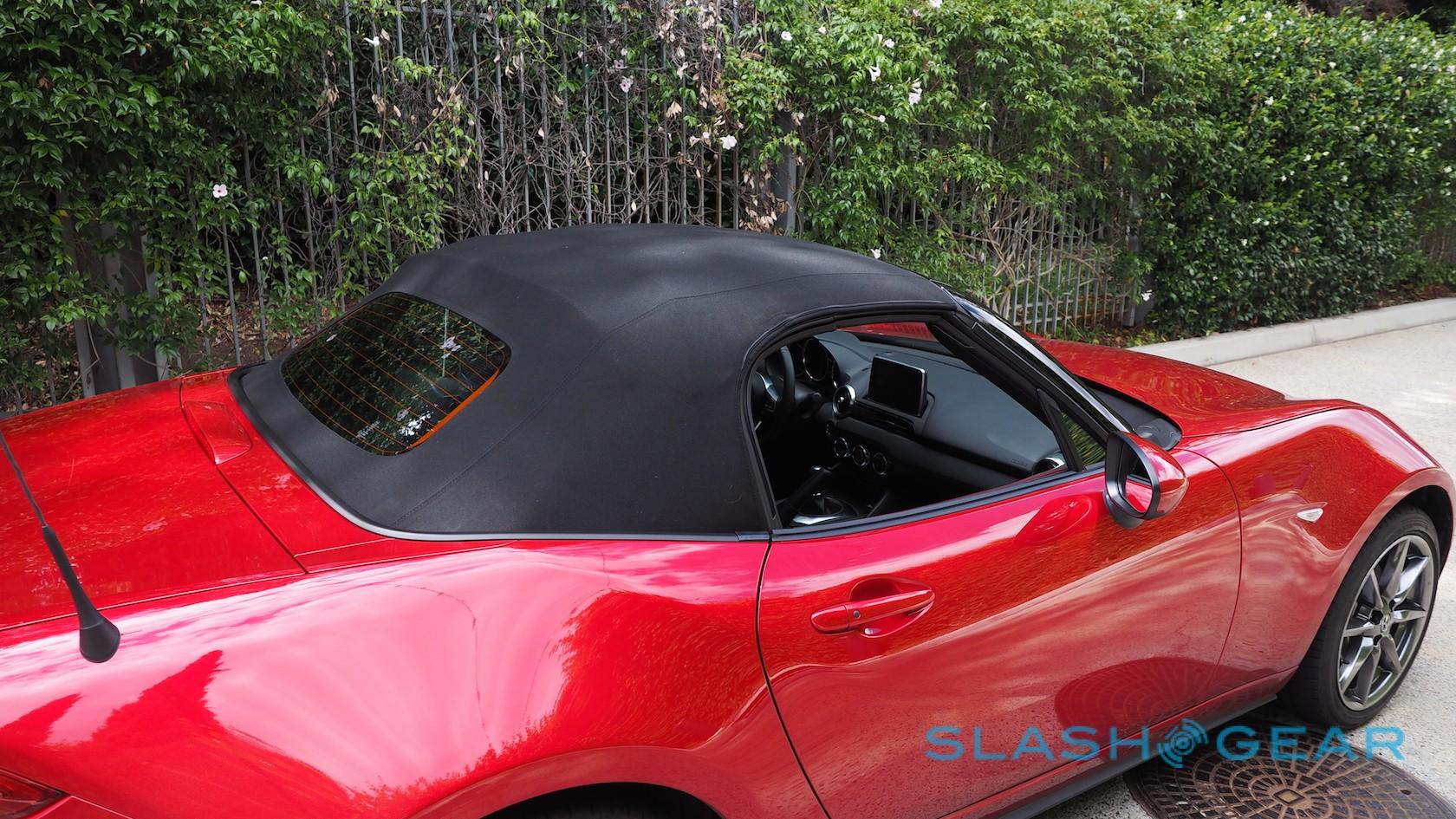 Altogether it's slick enough that you can do it one-handed. Meanwhile, headed down a freeway onramp and realizing we'd left the roof stowed, even at 45 mph we could muscle it upright, though that's obviously not something we'd recommend the driver do.