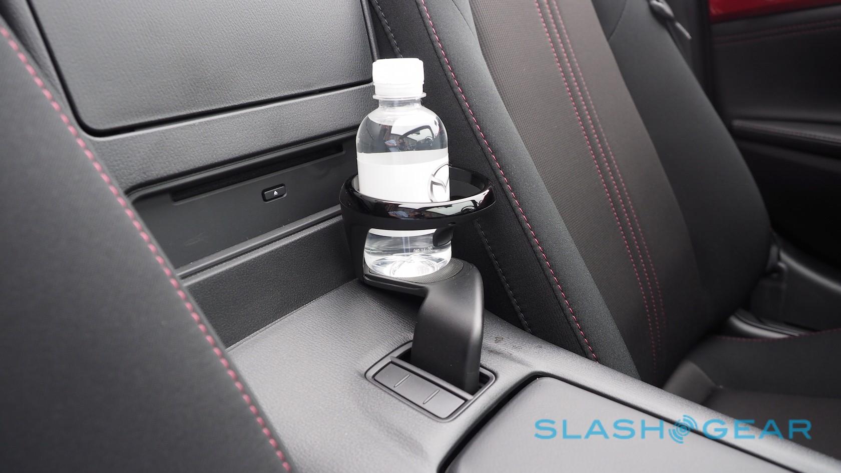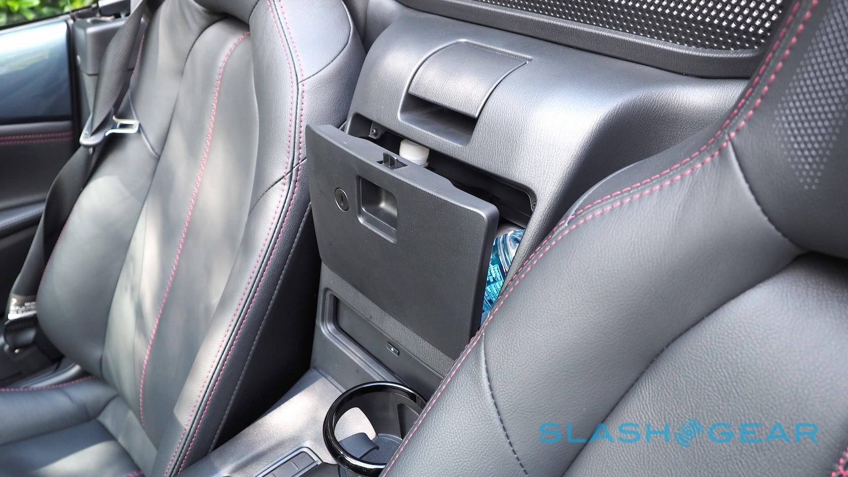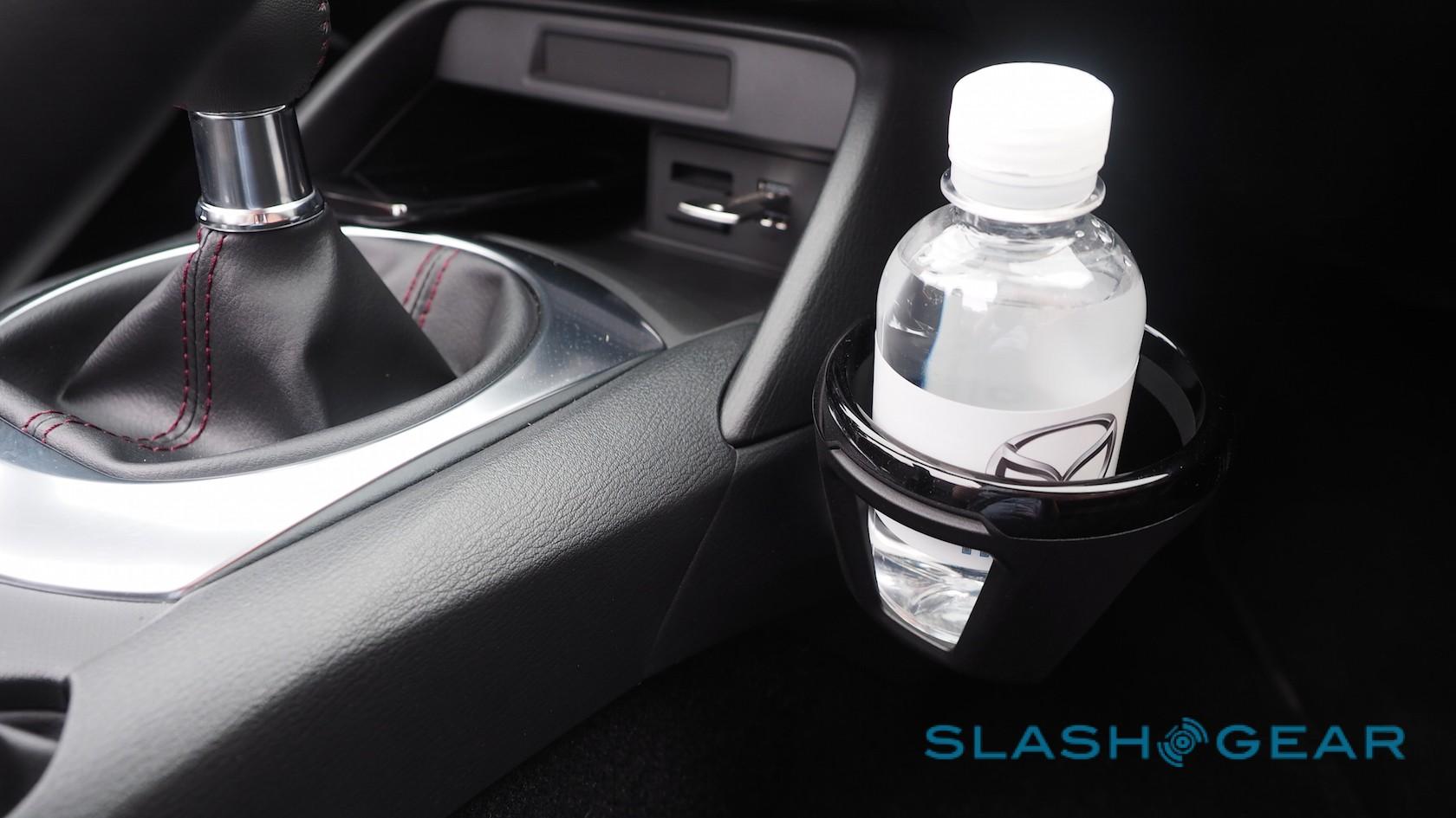 That's also where you'll find the cupholders, marginalized ergonomically in favor of leaving you elbow room for changing gear. "The cupholders are now kinda awkwardly under your armrest," Coleman admitted scathingly, "because in a sports car shifting is more important than drinking." They also detach altogether, and one can be repositioned in the passenger footwell if you prefer easily-accessible caffeine perks to the sprightly drive.