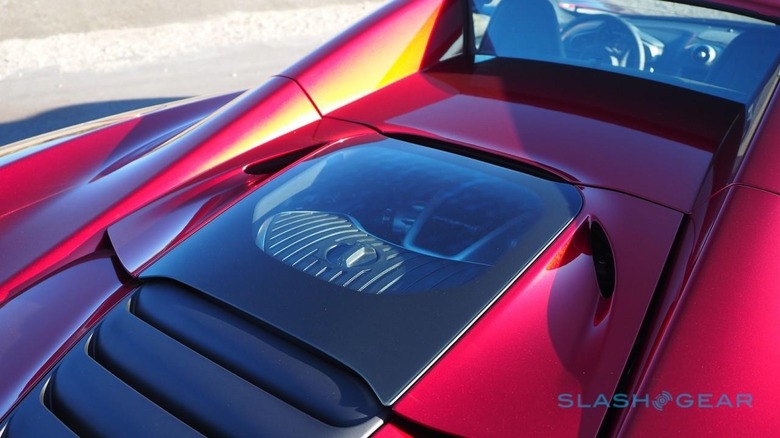 Your $10k also gets your the Meridian audio upgrade for McLaren's Android-powered infotainment system. I'd like to tell you I gave it a full audition but I listened to it for the duration of about two songs and then turned it off in favor of the engine sound instead. My Spotify playlists paled in comparison to the gatling gun pops the 650S' tailpipes stutter out in Sport mode, heard all the more clearly when you wait the seventeen seconds for the Spider's two-piece hard-top to work its origami way behind the seats.