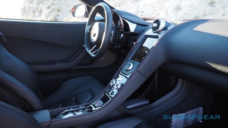 That would've been a shame, too, since the McLaren's interior is rather special. Whoever had specified this particular 650S Spider clearly had excellent taste, ticking the box for the extra carbon fiber and red contrast stitching. It also had the Enhanced Technology Pack, an $9,950 add-on the most vital components of which are the parking sensors, reversing camera, and vehicle-lift.
