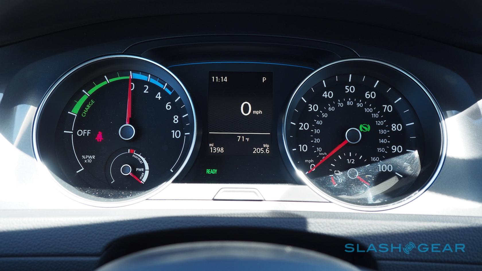 The gas-powered car's dashboard carries over too, which means an analog fuel gage repurposed to show battery level. I'm less convinced by VW's graphics overall; the touchscreen in the center console didn't give me the same at-a-glance overview that I felt I got from the Leaf. In the driver's display, I had to choose between the useful digital speedo and always seeing the range-remaining estimate.