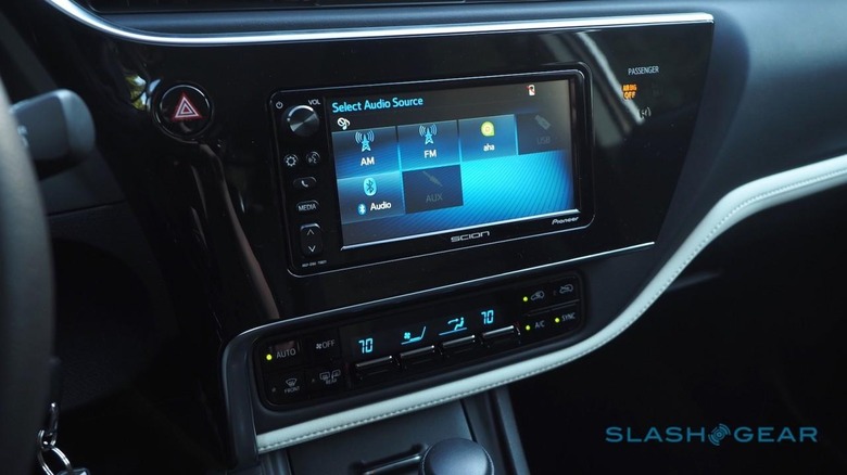 Inside, parent company Toyota's proclivity toward glossy black plastic is well in evidence, a big slab of the stuff in the center stack holding the infotainment unit. It's tough to keep clean from greasy fingers, but at least you get a physical volume knob. I had some issues with Scion's Bluetooth implementation, particularly when trying to pipe through Google Maps instructions: every time they finished, the music on my phone would automatically resume, even if I'd turned it off beforehand.