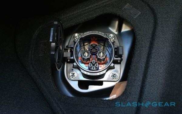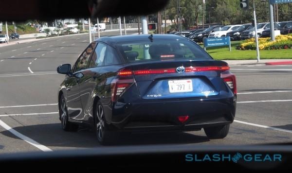 Interestingly, when you do that it's not quite as silent as you might expect from an electric drive. Certainly, the motors themselves have a same subdued whine we're familiar with from the Prius, but the hydrogen system introduces its own array of pops, clicks, and hisses. There's a whoosh and a fizz when you plant your right foot, while the regenerative braking system thrums eagerly when you lift off.