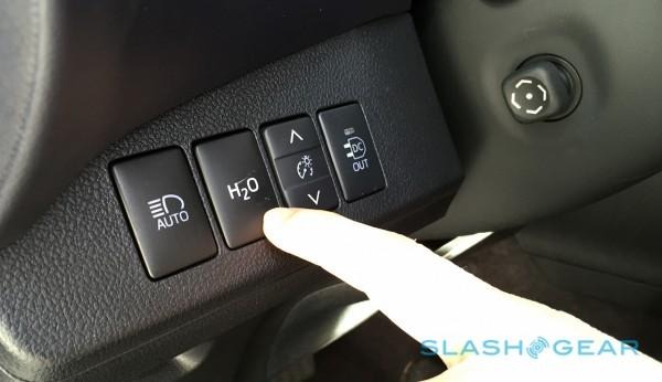 You can leave that discrete trickling up to the car to manage, but there's also an "H2O" button down to the left of the steering wheel which will trigger a manual gush. Toyota says that's there primarily to clear out the fuel-cell if you're parking the Mirai somewhere you know there's a risk of freezing temperatures (and, indeed, as a courtesy if you're parking in the Japanese system of stacked lots, rather than spritzing the vehicle beneath you).