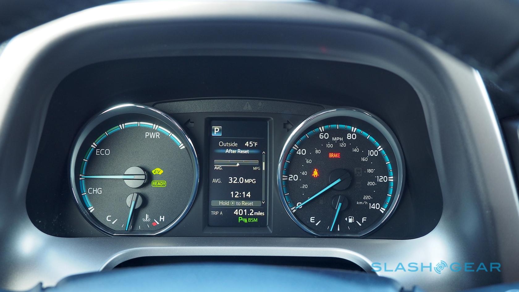 Officially it'll go to around 25 mph on the electric motors alone, complete with the now-familiar Toyota EV whine, but anything more than the lightest of right feet will rouse the gas engine. Toyota opted for a simple analog gage to show what stage the drivetrain is at, though I missed a more comprehensive insight into what power was flowing where.