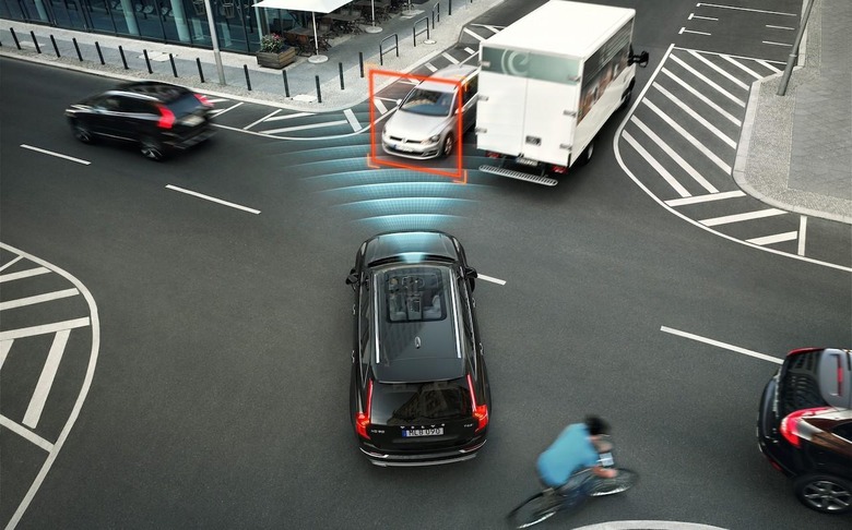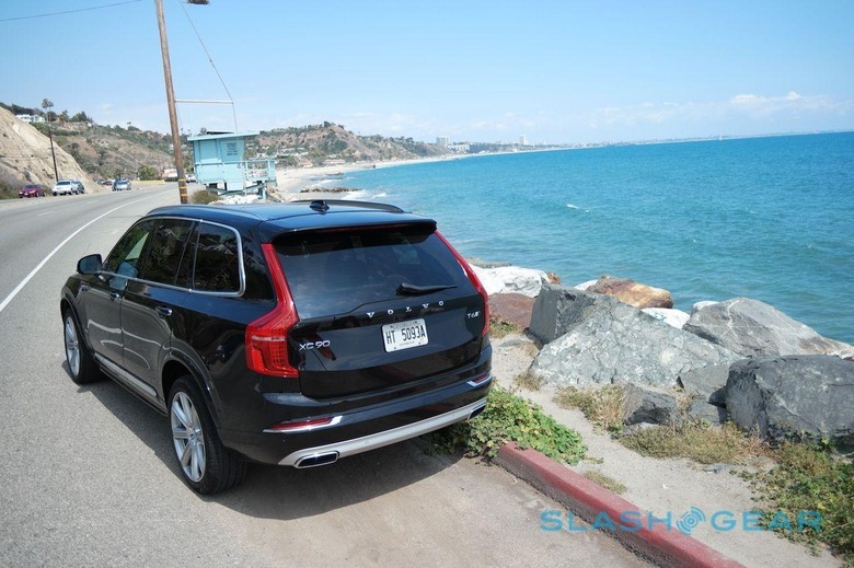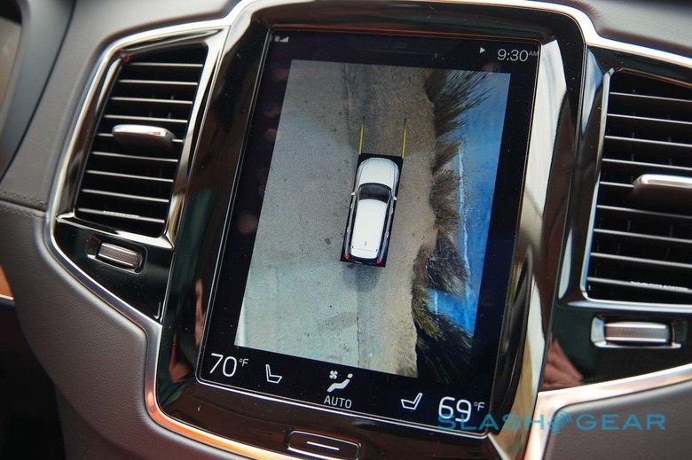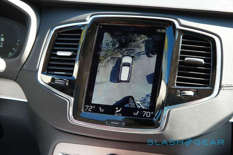 Rear collision protection can lock the brakes if the vehicle behind is approaching too fast while you're stationary, as well as tighten the seat belts, to minimize the impact of a crash; outside the US, the XC90 will flash its brake lights as a warning, as well.
